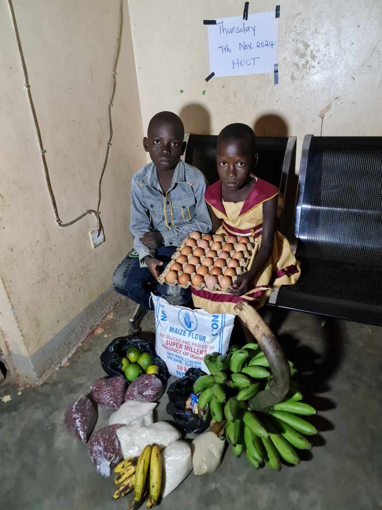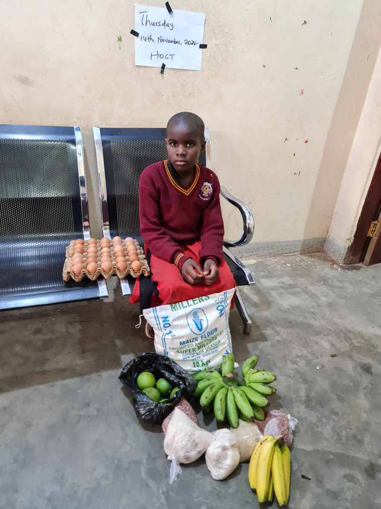 Many children have come to receive their food today at HOCT, after we have brought the heavy shopping to the office. When I look at how thin my African colleagues are, I do wonder how can they lift such a heavy load. I once saw my colleague Mugoya carry 30 kg over his head. I mean… how? Yeah, alright 🙂